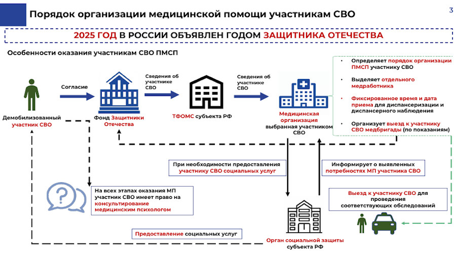 В рамках объявленного Президентом России Года Защитника Отечества в Программе госгарантий утвержден особый порядок оказания медицинской помощи отдельным категориям ветеранов боевых действий. Получить ее могут демобилизованные участники СВО.